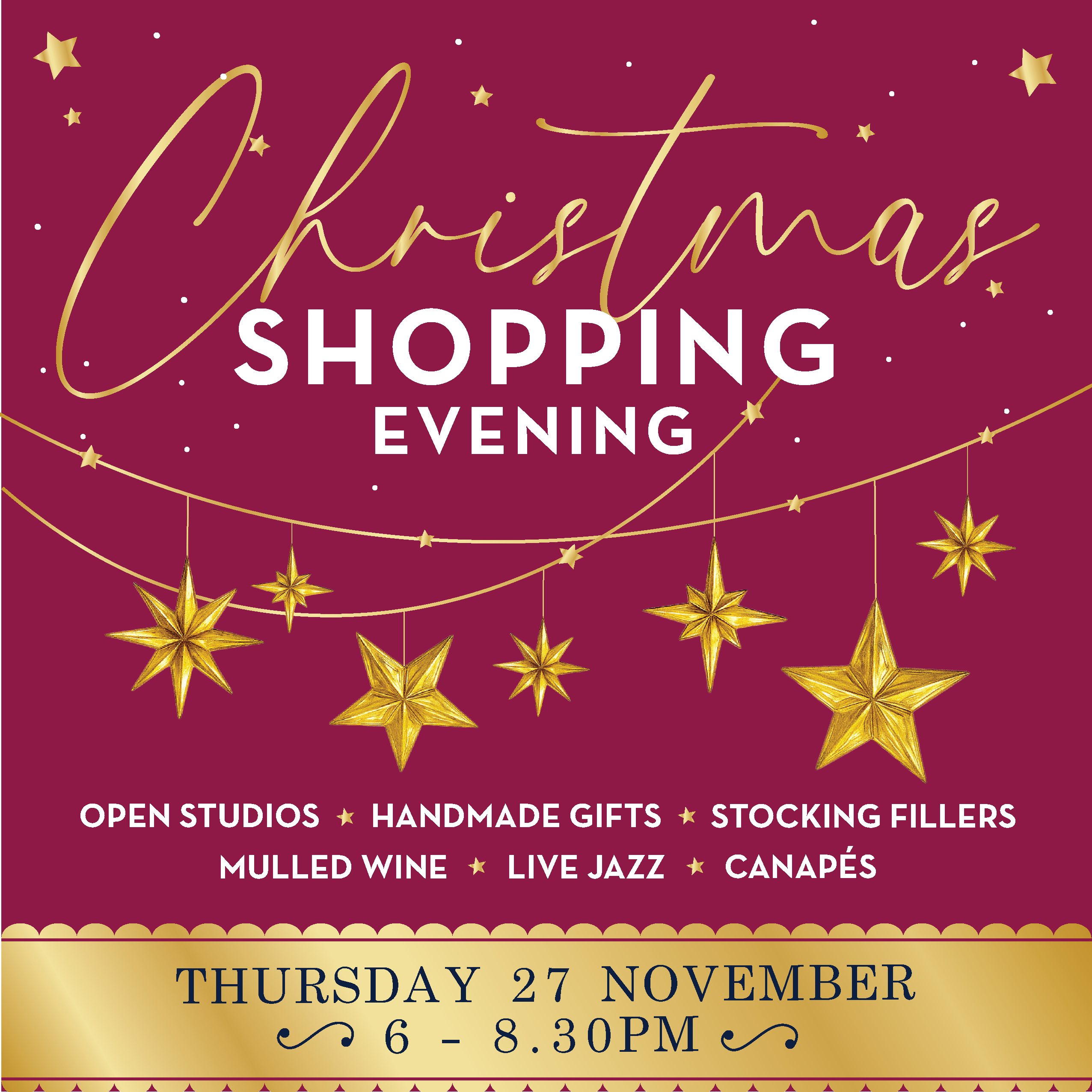 We are thrilled to be able to have our Christmas Shopping Evening again this year. Come and join us on Friday 26th November between 6-8pm to enjoy a festive shopping experience. There will be a complimentary glass of mulled wine on arrival, live music from local musician Luke Futcher and 10% off* purchases on the night. Take in the atmostphere and browse for beautiful gifts from our Gallery Shop, Studios and Christmas exhibition.